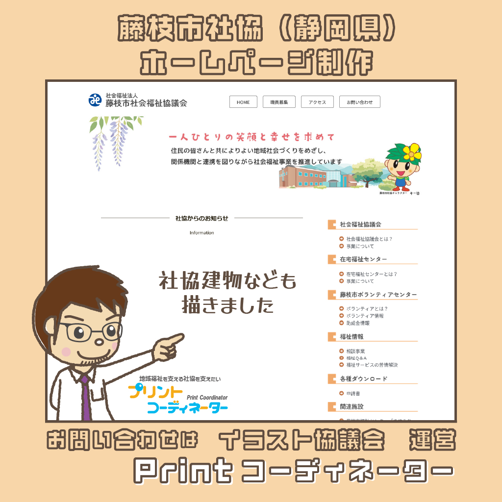 藤枝市社会福祉協議会(静岡県)様より、ホームページ制作のご依頼をいただきました。藤の花と社協の建物も描かせていただきました。