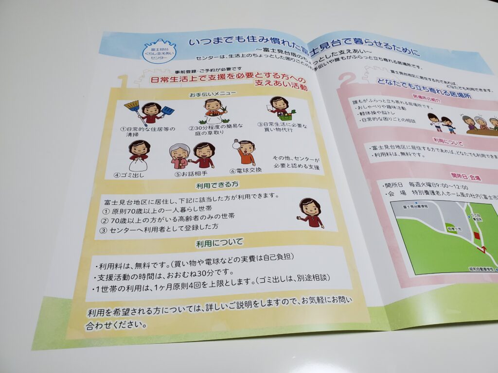 静岡県富士市社会福祉協議会様より、富士見台くらし支えあいセンターパンフレットの制作依頼をいただきました。